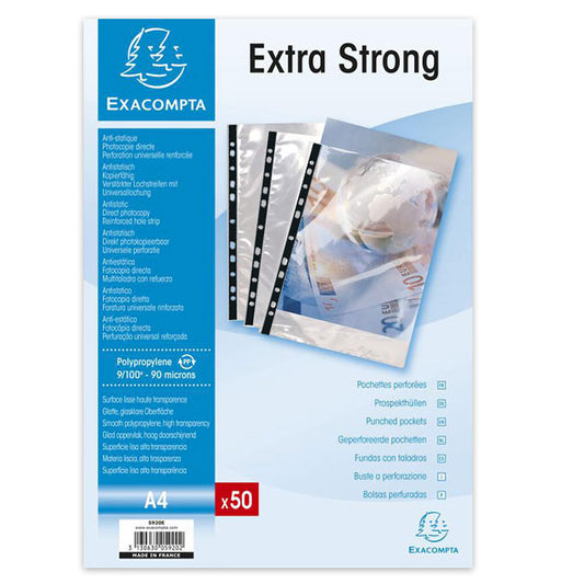 100 Pochettes perforées A4 Exacompta Avec bande renforcée