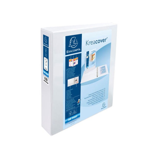Classeur personnalisable A4+ EXACOMPTA Kreacover 4 anneaux dos 4cm blanc