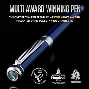 Stylo Roller Bleu Nuit Laqué Finition Acier Chromé, Rechargeable, Beau Cadeau pour Homme & Femme avec Boîte, Accessoire de Bureau Professionnel