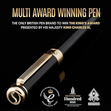 Scriveiner Stylo Roller Coffret Stylo Roller Noir Laqué Finition Or 24 Carats, Rechargeable, Beau Cadeau pour Homme & Femme avec Boîte, Accessoire de Bureau Professionnel