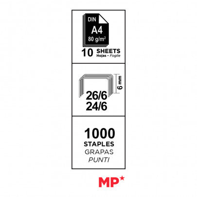 Mini agrafeuse 24/6 et 26/6 Pastel + 1000 agrafes 24/6