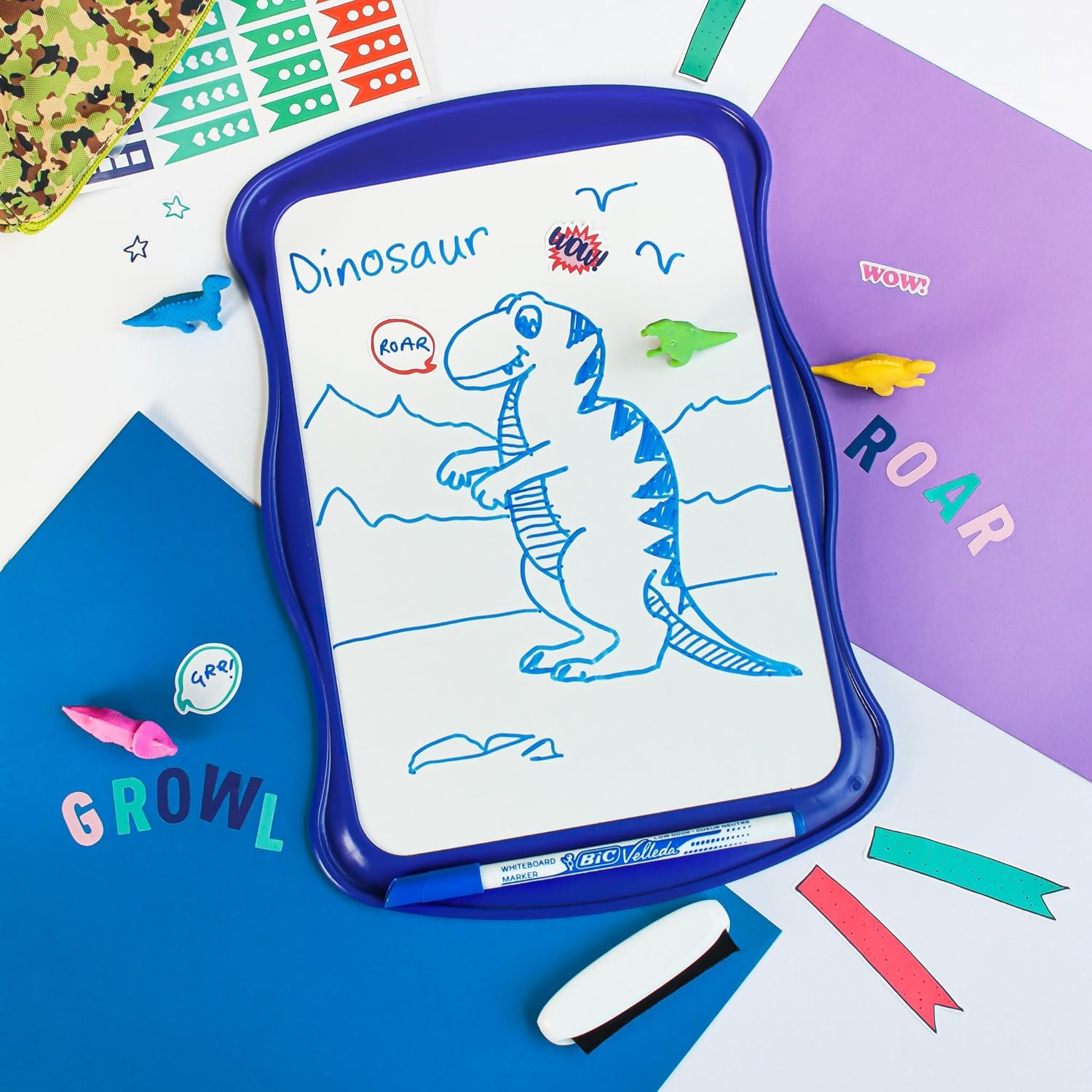 Complet, ce kit pour petits écoliers contient une ardoise BIC Velleda effaçable à sec, 8 feutres et 1 effacette qui se fixe sur l'ardoise
