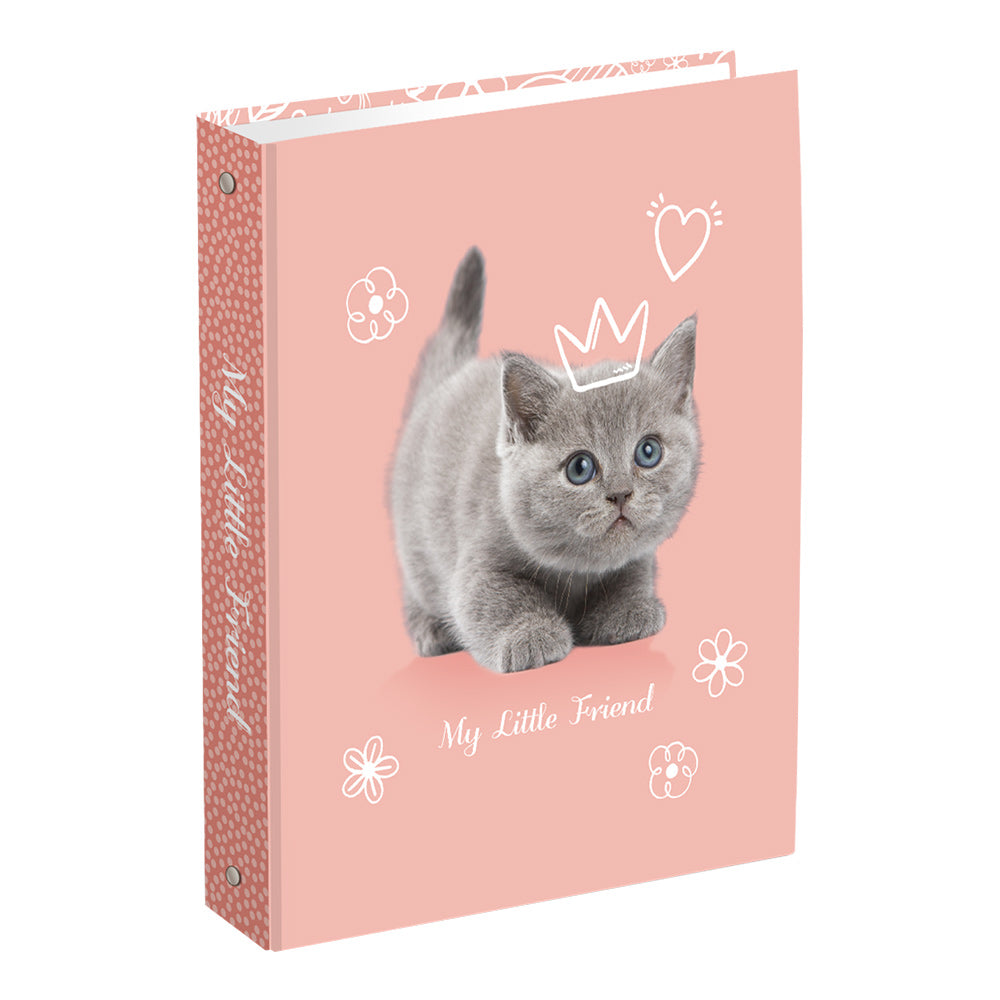 Classeur scolaire A4 Little Friends Chat 4 anneaux rose